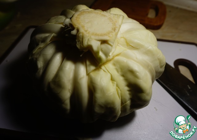 Ну и в таком виде, с «удлиненной» кочерыжкой храним капусту дальше.