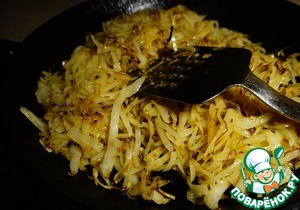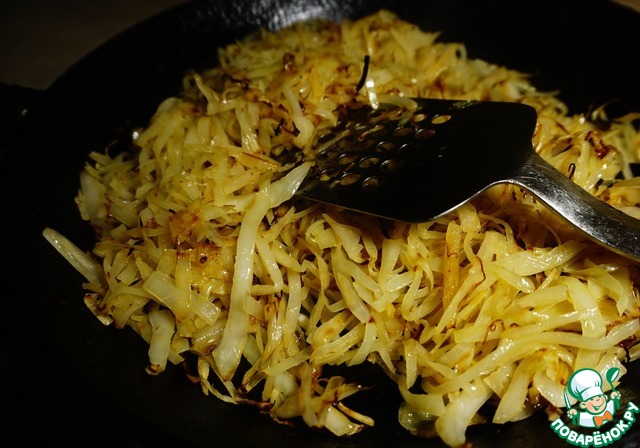 На среднем огне обжариваем капусту без соли. Слегка подсаливаем в конце.