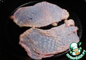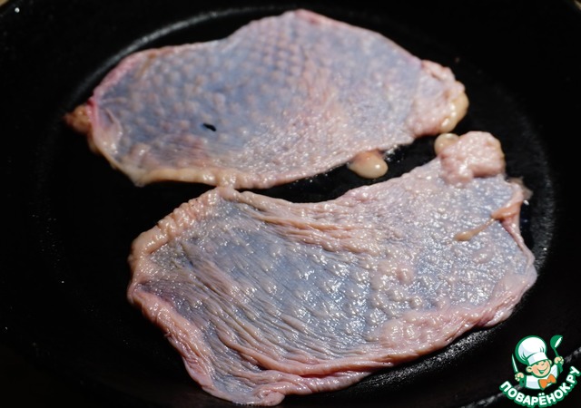 На этом жире поджариваем мясо до золотистой корочки. Я жарю без соли и буквально 5 минут. Немного подсаливаю в конце.