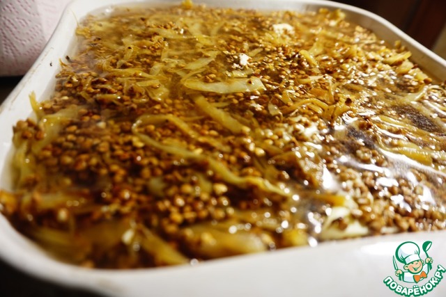 Слегка перемешиваем гречку сливочное масло и капусту.