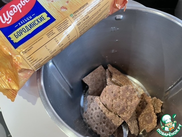 Хлебцы «Щедрые» Бородинские измельчите с помощью блендера.
