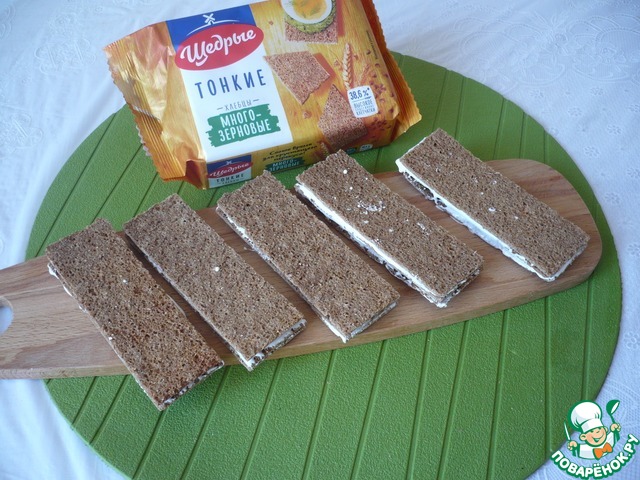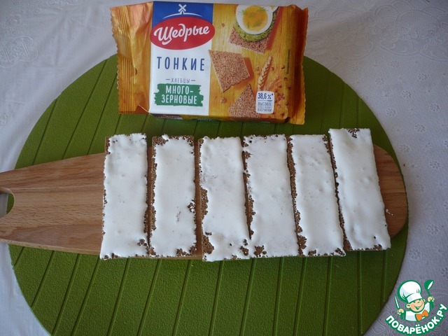 Намажьте хлебцы много - зерновые "Щедрые" тонким слоем крема из маршмеллоу.