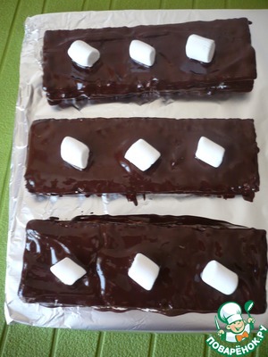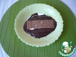 Сложите хлебцы друг на друга (3 штуки). Самый верхний слой оставьте чистым (не смазывайте кремом из маршмеллоу).