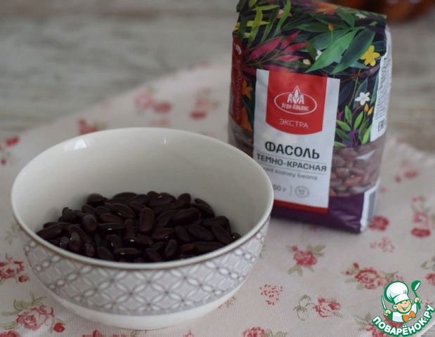 Замочить фасоль на 12-14 часов в воде. Я готовлю начинку для пирогов из фасоли темно-красной ТМ "Агро-Альянс" Экстра.