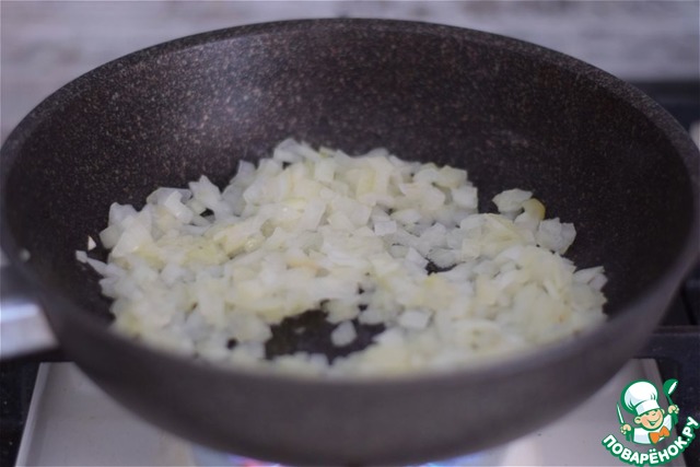 Лук мелко нарезать и обжарить на хорошо разогретой СУХОЙ сковороде пару минут, постоянно помешивая. -