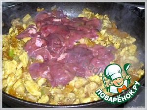 А это просто моё извращение, я не хотел, она сама пришла, то есть мысль, и я начал её думать: а если добавить грамм так 300-400 нарезанной на небольшие кусочки куриной печенки... и в конечном результате, как показала дегустация готового блюда, мысль была удачной.