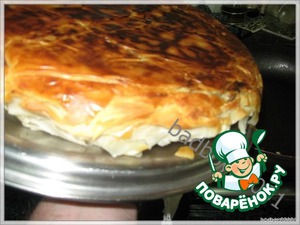 Здесь начинается ловкость рук: надо накрыть сковороду подходящей крышкой или достаточно большим блюдом и, прижимая рукой плотно к сковороде, перевернуть пирог (лучше всего этот фокус делают мужчины),