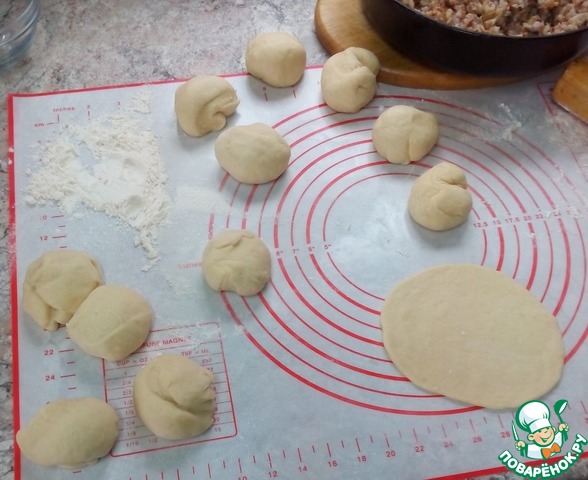 Рецепт «Постные пирожки с гречкой и шампиньонами»: