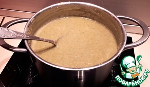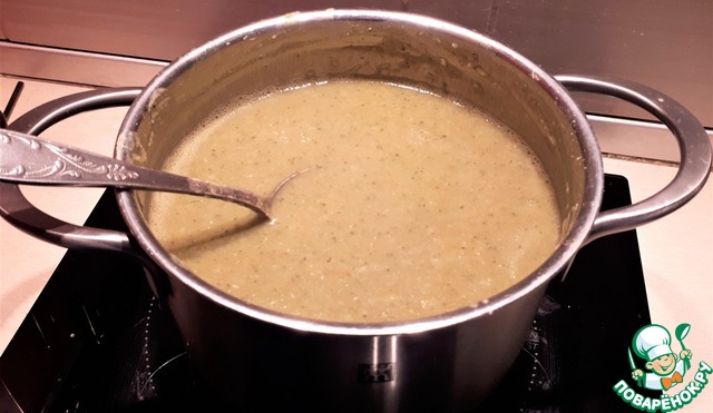 Пюрируем суп погружным блендером. Провариваем ещё пару минут.