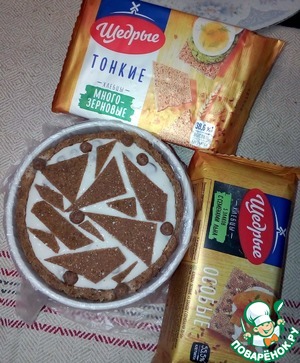 Хлебцы ТМ "ЩЕДРЫЕ" многозерновые тонкие, которые тоже стали эластичными, я разрезала их на геометрические фигуры.