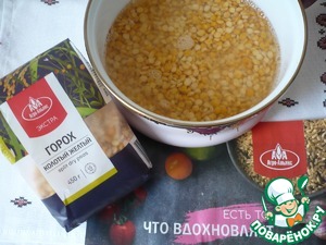 • Горох помыть несколько раз, положить в сотейник, залить водой.