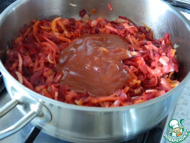 И зажарку из лука, моркови, сельдерея, свеклы.