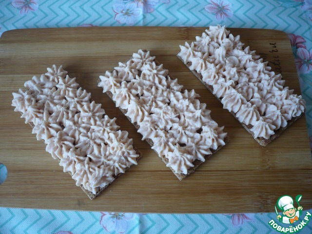 Или с помощью кондитерского мешка (можно просто намазать) распределить паштет на гречневые хлебцы "Щедрые".