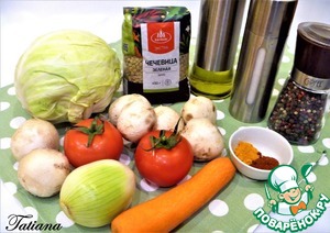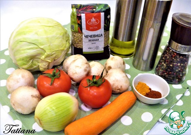 Ингредиенты для «Тушеная капуста с чечевицей и грибами»: