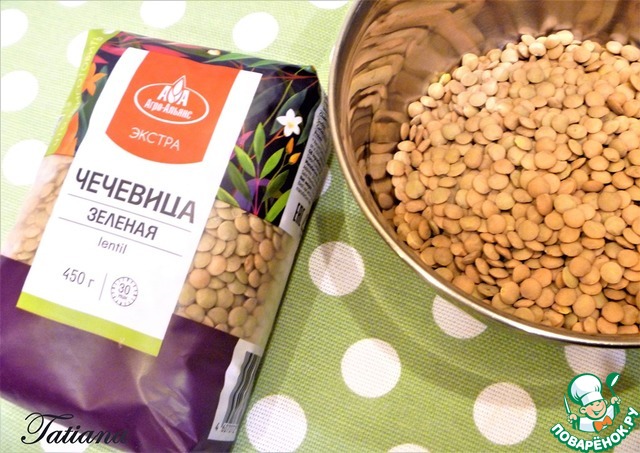 - Чечевица (зеленая,~150 г. в сухом виде т/м "Агро-Альянс" ЭКСТРА) — 1 стак.