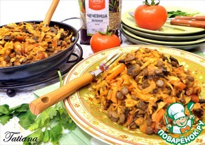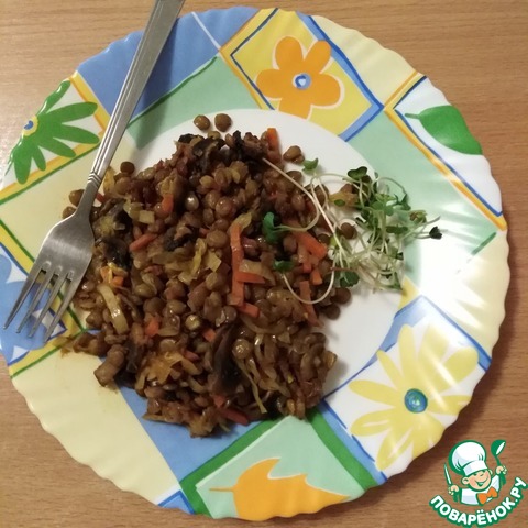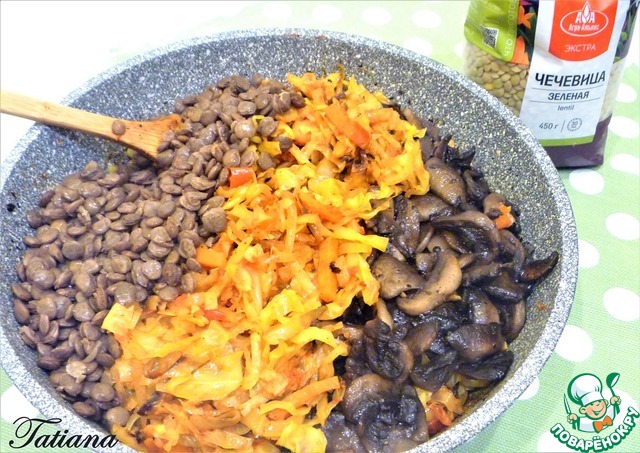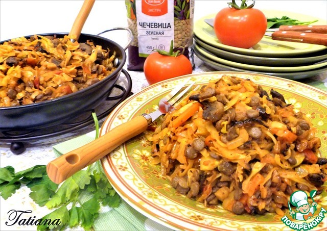 Рецепт «Тушеная капуста с чечевицей и грибами»: