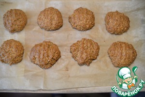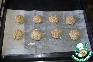 Противень застилаем пекарской бумагой. Из теста делаем шарики размером с грецкий орех, кладём на бумагу.