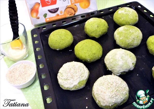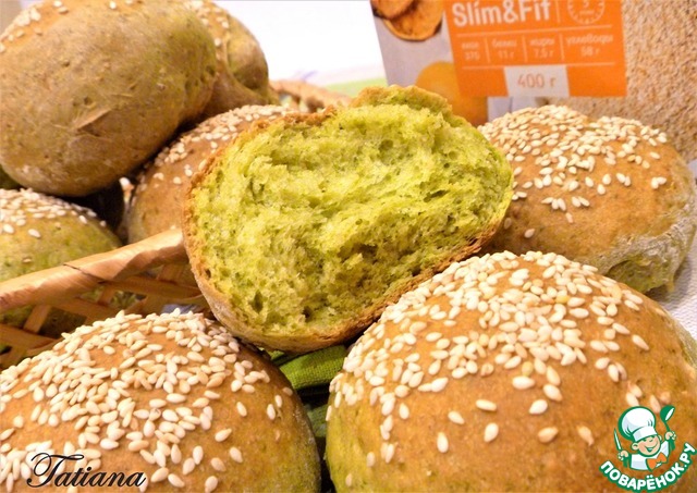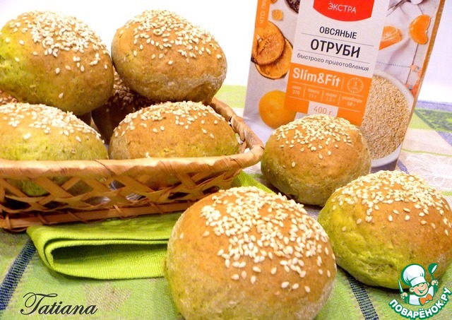 Рецепт «Шпинатные булочки с отрубями и кунжутом»:
