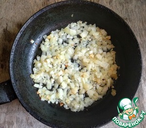 Лук и чеснок почистить, помыть, нарезать кубиками, обжарить в оливковом масле до золотистого цвета.