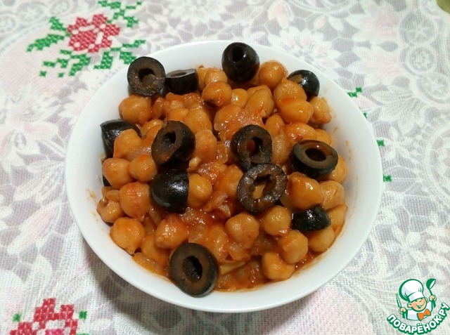 Нут с маслинами, тушёные в томатном соусе - ароматное и вкусное блюдо, которое можно подать в качестве закуски или гарнира.
