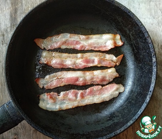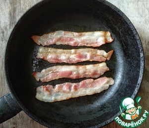 Бекон обжарить на сковороде до золотистого цвета без масла.
