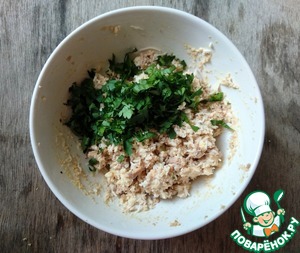 Петрушку помыть, обсушить и мелко порезать, добавить в миску, хорошо перемешать.