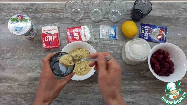 Ингредиенты для «Творожно-вишнёвый десерт»: