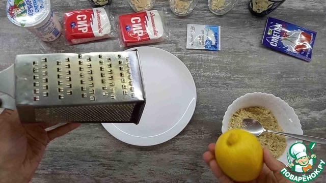 Взбиваем творог со сметаной, сахаром, цедрой, ванилью и загустителем до однородного крема