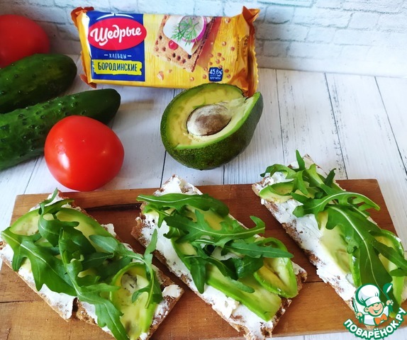 Рецепт «Бутерброды с рукколой и авокадо»: