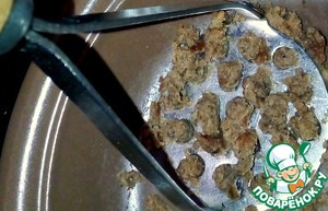 Размоченные хлебцы размять картофелемялкой с отверстиями. Или мелко порежьте.