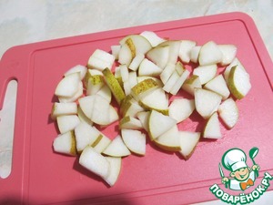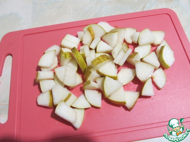 Груши порезать тонкими ломтиками.
