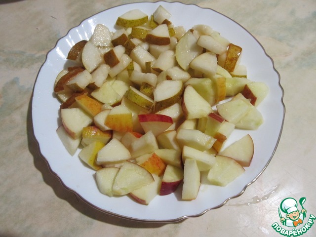 Яблоки и груши сбрызнуть лимонным соком.