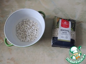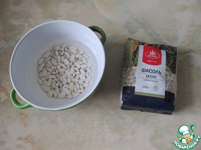Белую фасоль залить водой и оставить на несколько часов, можно на ночь. Затем промыть, залить чистой водой, довести до кипения и отварить на медленном огне до готовности.