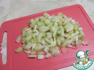 Сельдерей порезать тонкими ломтиками.