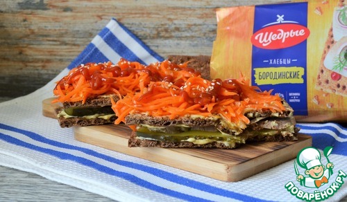 Намазать сверху хлебец соусом и положить 2 ст. л. моркови по-корейски.