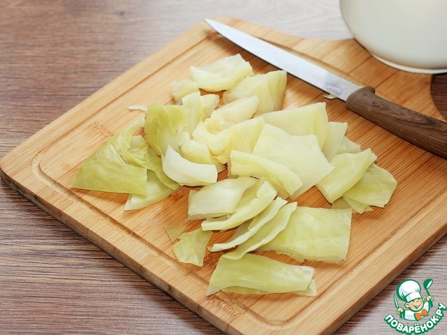 5. Охлажденную капусту рубим крупными кусочками и выкладываем в чашу блендера.