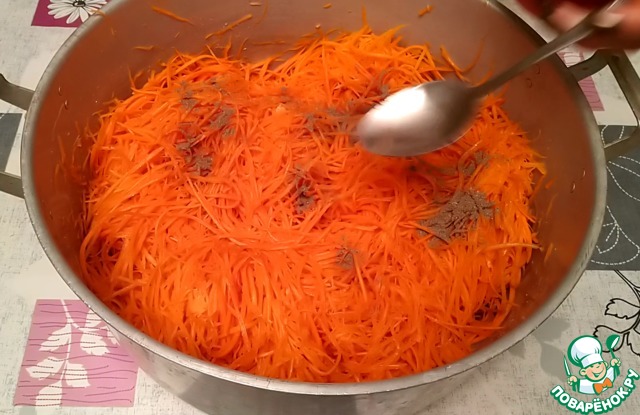 Следует отметить, что соль в корейскую морковь добавлять не нужно! -
