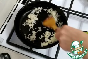 Обжариваем лук до золотистого цвета. -