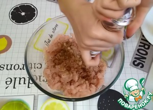 Выкладываем лук в куриный фарш.