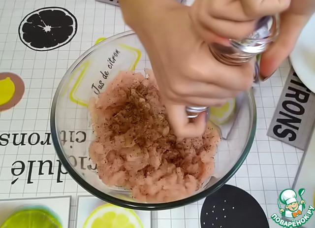 мускатный орех, молотый черный перец, соль. -
