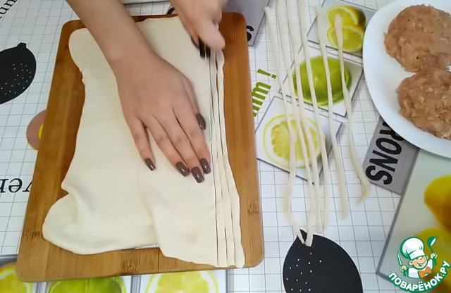 Готовое бездрожжевое слоеное тесто нужно предварительно разморозить.