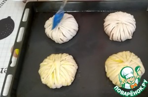 Оставшимся желтком смазываем шарики.