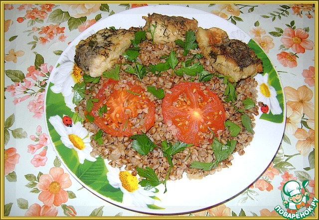 Выкладываем гречку на тарелку. Подаем с маринованными грибочками и зеленью.