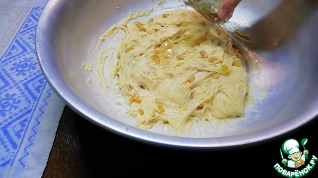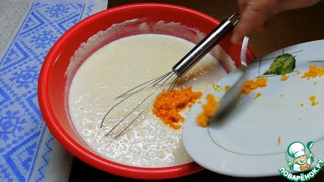В тесто отправляем 2 ст. л. коньяка или водки и цедру 1 апельсина (по желанию).