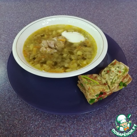 Рецепт «Томленые зеленые щи с "Щедрым" сюрпризом»: