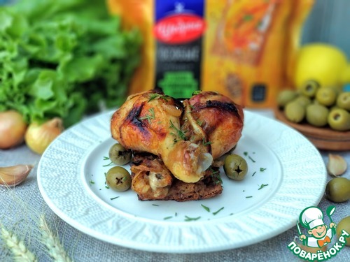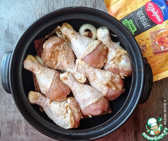 Рецепт «Куриные голени, запечённые на хлебцах»: