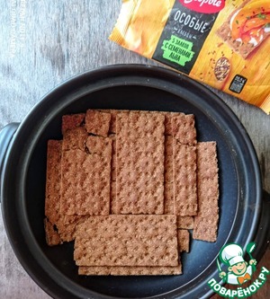 Форму/сковороду для запекания смазать оливковым маслом (1 ч. л.). Разложить хлебцы ТМ "Щедрые" в два слоя.