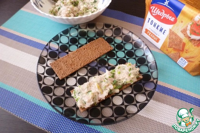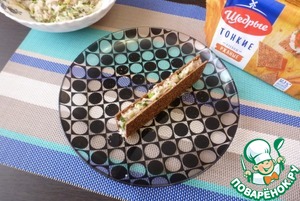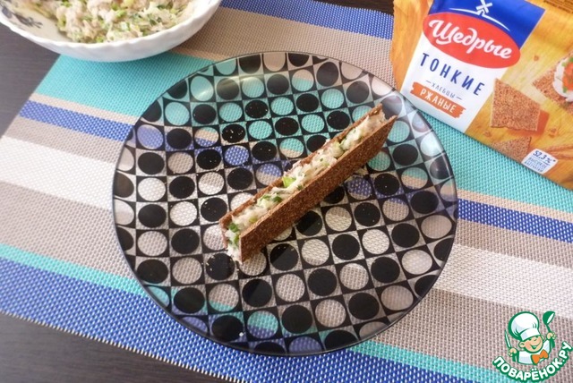 Намазать куриный фарш на ржаной хлебец "Щедрый". Сверху прикрыть вторым хлебцем.