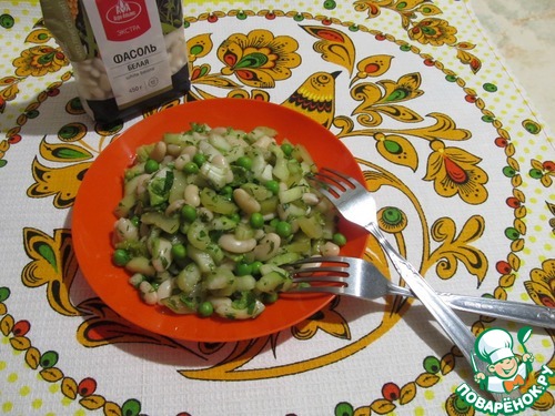 Салат из зелёных овощей с белой фасолью может быть и закуской, и полноценным обедом. Сочный, сытный и витаминный салатик отлично подойдет для диеты и поста.
