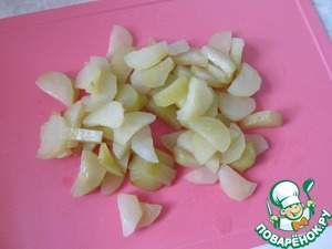 Замороженный горошек залить кипятком и оставить до остывания. Затем воду слить.